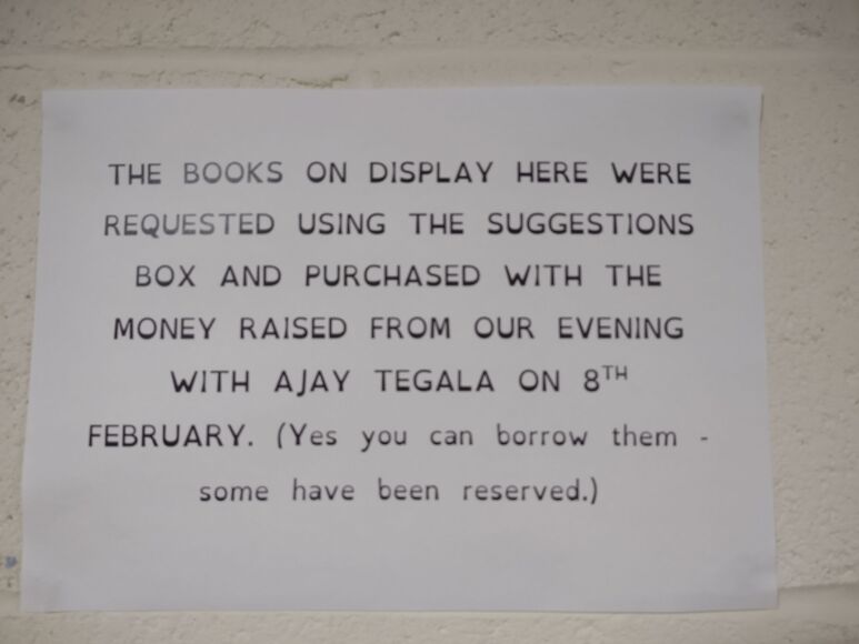 Following our recent evening with Ajay Tegala, we have now received the books we ordered. These have been purchased with the donations made to the library during the event.