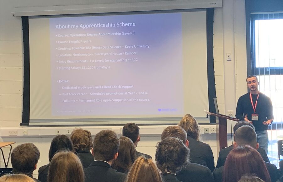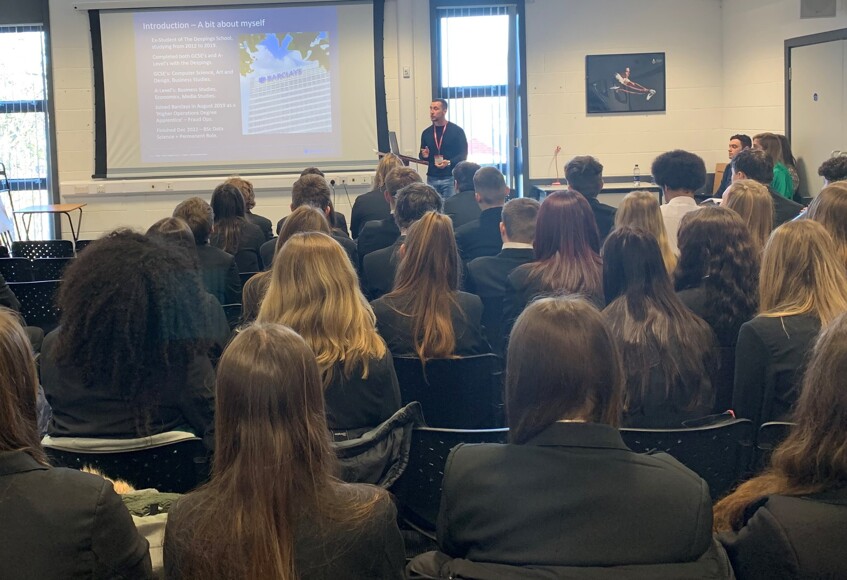 Former student and alumni Jack Bray talked about his pathway following completion of his GCSEs and A-Levels at The Deepings School. Jack explained how he joined Barclays as a higher degree level operations apprentice with Fraud Operations and achieved his qualification in December 2019. He went on to provide further insight into the apprenticeship route and students seemed impressed with the starting salary of £21,220 from day one!