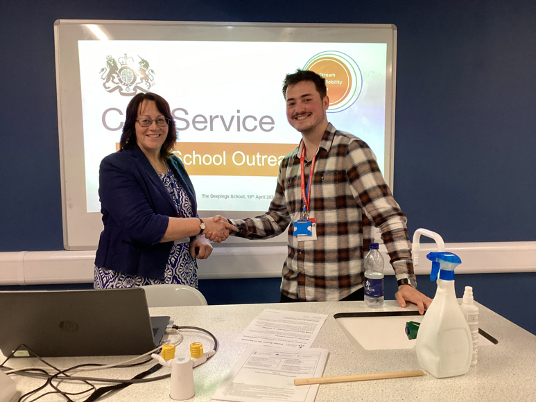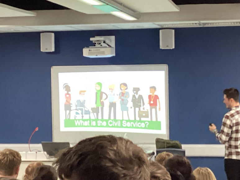 Daniel delivered sessions to Year 12 and Year 13 students outlining the wide range of opportunities available within the Civil Service. He explained the different pathways available and highlighted how apprenticeship and degree routes can both lead to the same destination.
