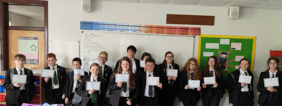 The most successful pupils taking part received a gold, silver or bronze awards under their tiered system. Below is a list of the pupils who took part and what tier they achieved. Special mention must go to Eddie Maddison who achieved a gold award and the best score in the school, and to Brandon Crooks who achieved a silver award and the best score out of all the year 7 students entered.